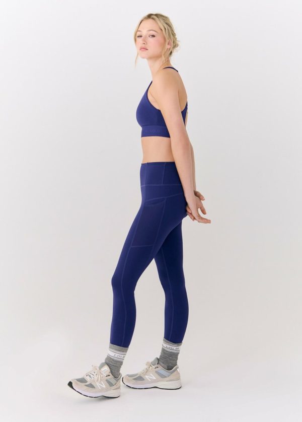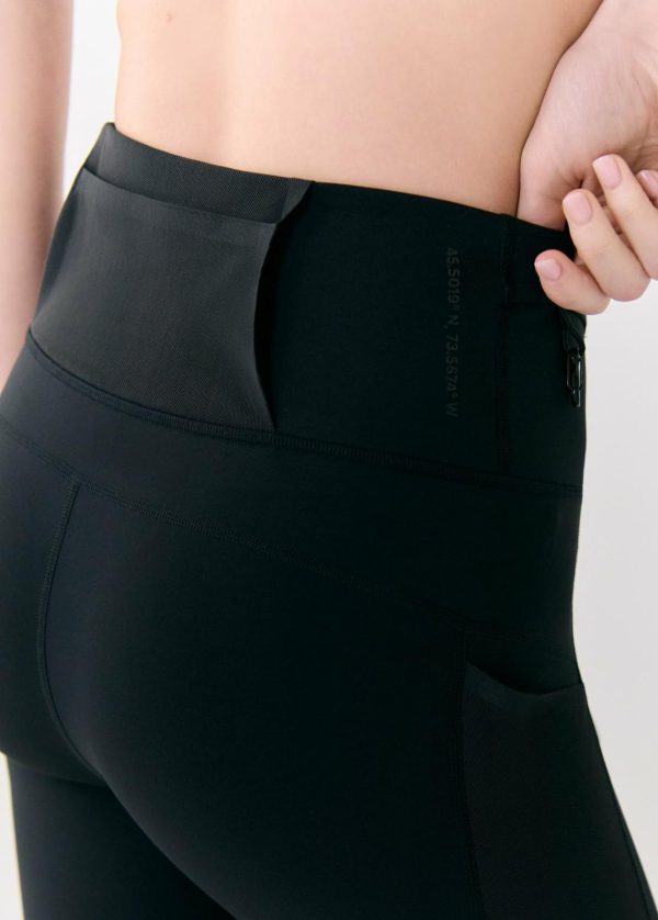 -compression fabric, 7/8 length, and a high waist for extra support and comfort. This style also features a detail with the coordinates of Montreal, allowing you to connect to the roots of Lolë, no matter where you are.