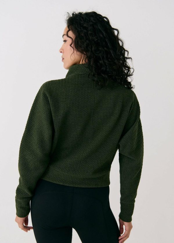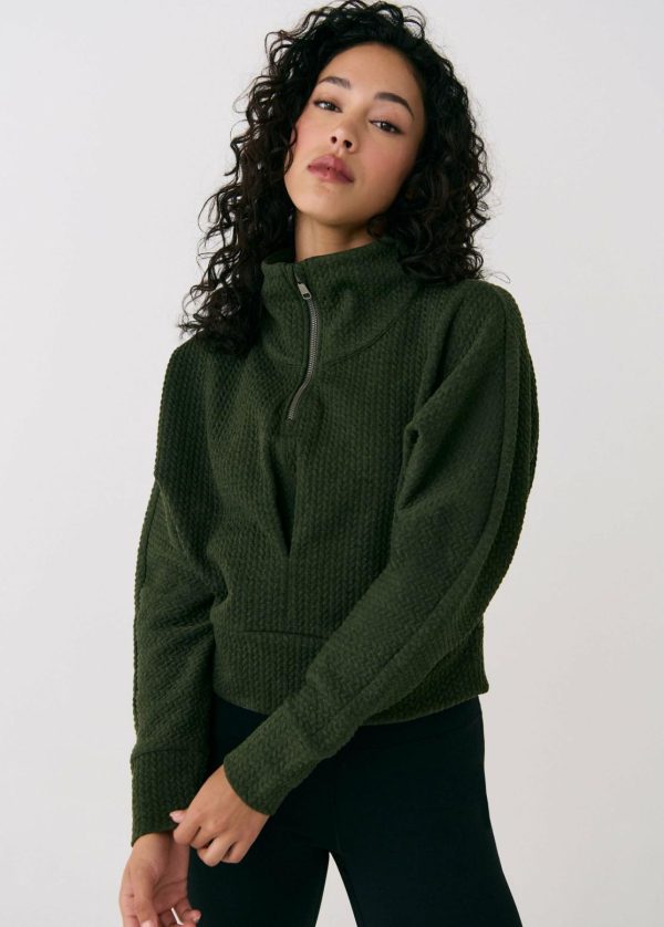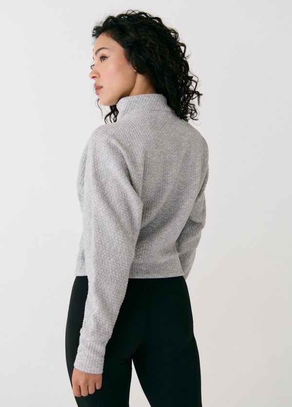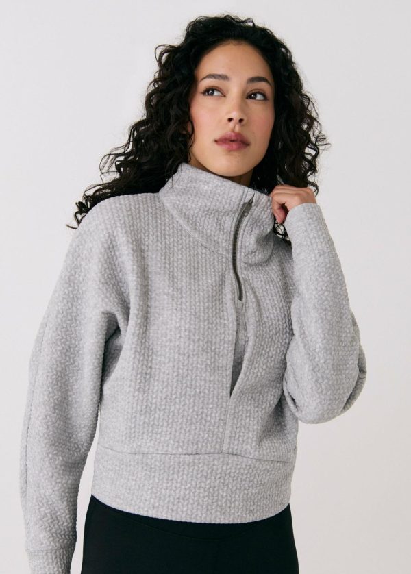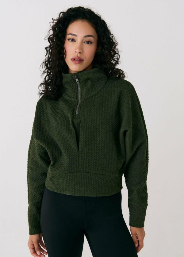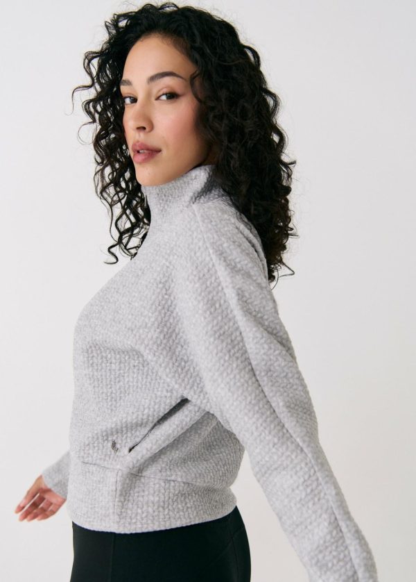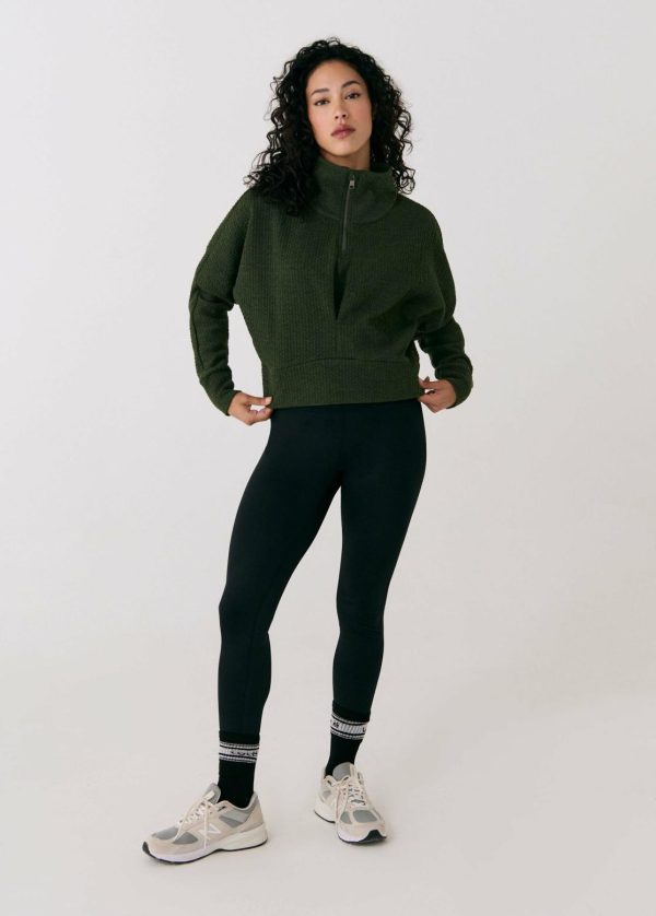 -zip is the perfect layer for weekends in or for running all your errands. This design has a relaxed fit, high neck and dolman sleeves for effortless movement.