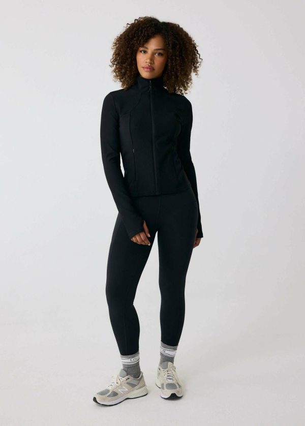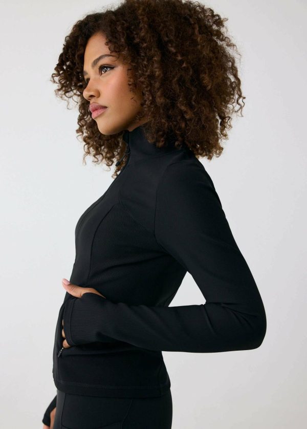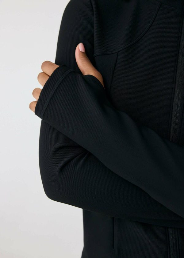 -smoothing rib knit as our Sculpt Rib Flare Leggings, this jacket has the perfect amount of stretch to hug you in the right places, shaping and sculpting your form.